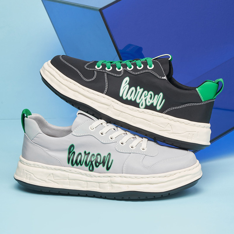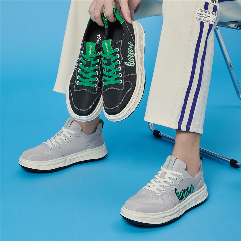 哈森男鞋新款秋季厚底时尚板鞋男透气帆布鞋男士休闲鞋运动鞋软底