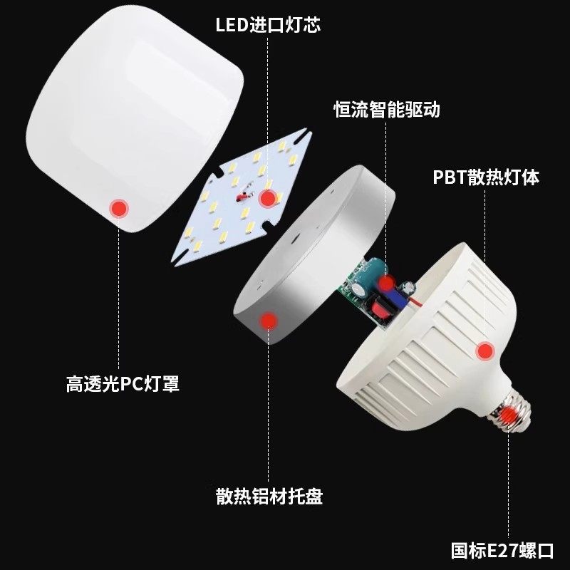 led螺口节能灯泡超亮护眼白光e27家用商用防水无频闪大功率照明灯
