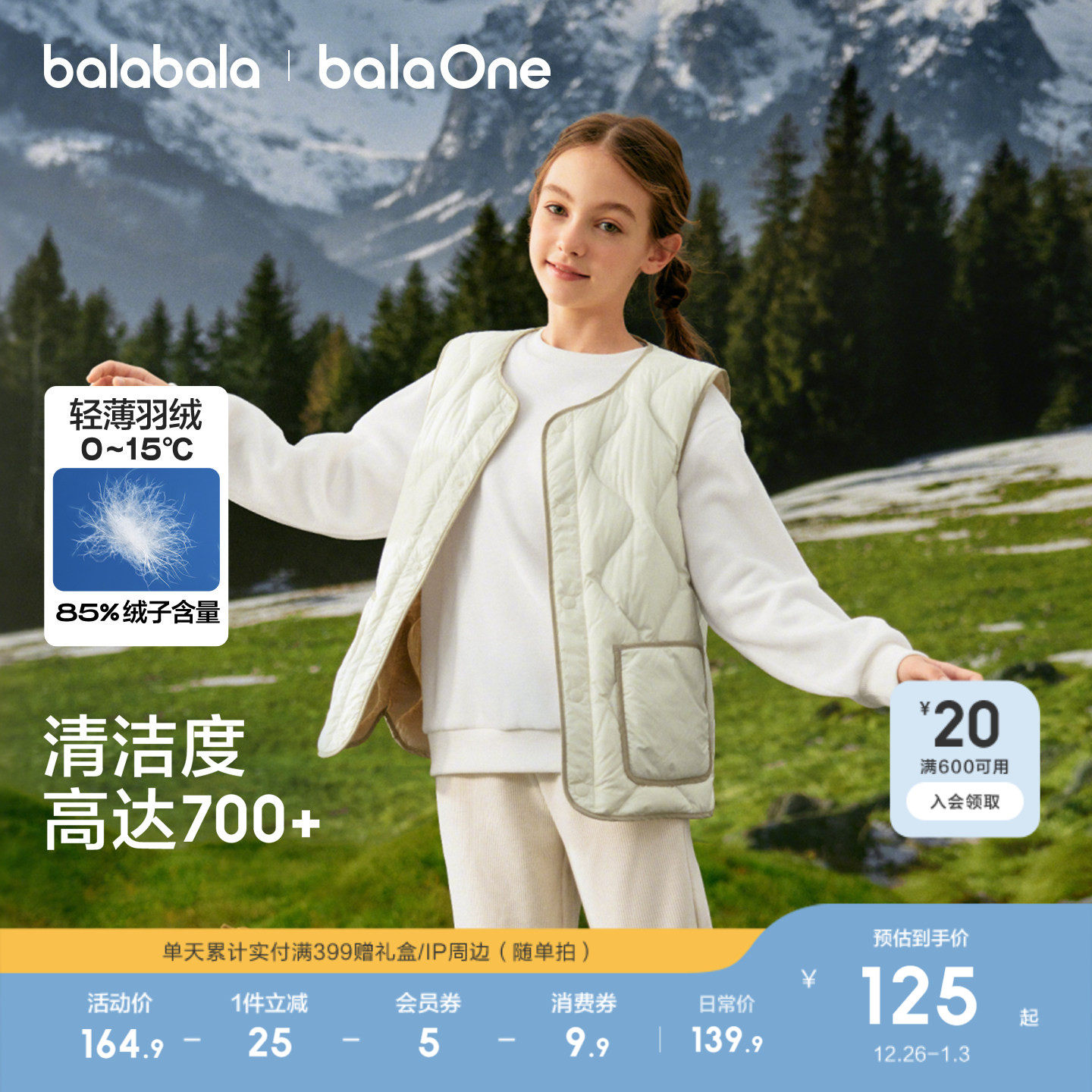 巴拉巴拉balaOne儿童羽绒马甲女童男童外套上衣新款童装2025秋冬