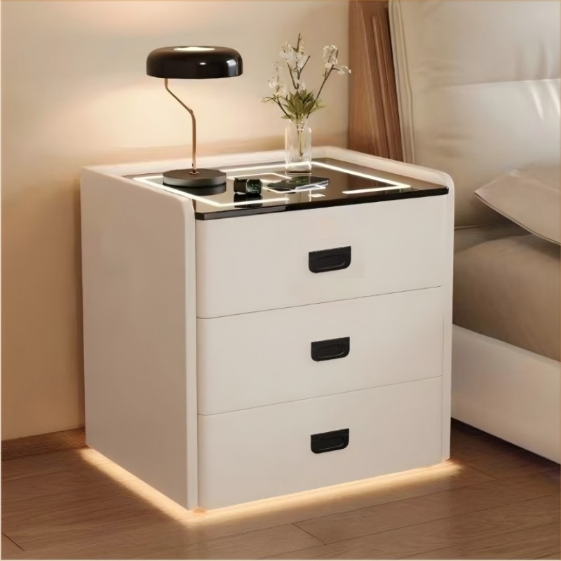 智能床头柜简约现代2025新款家用卧室轻奢高级感带锁免安装床边柜