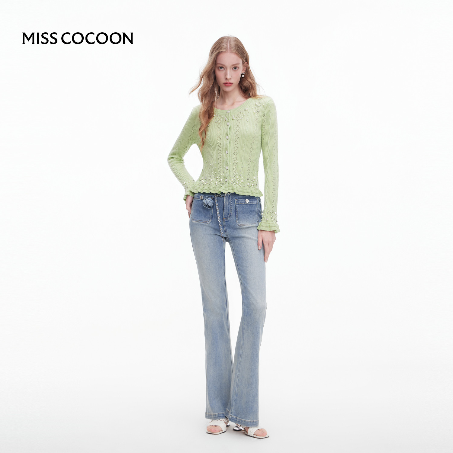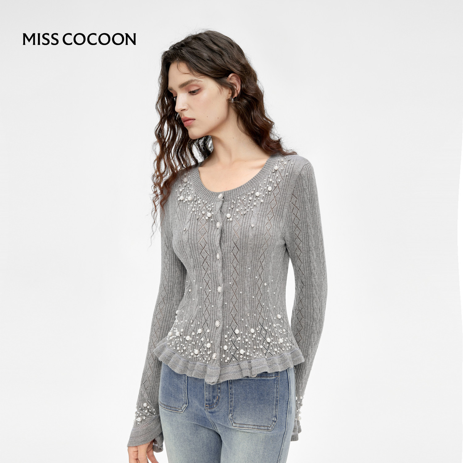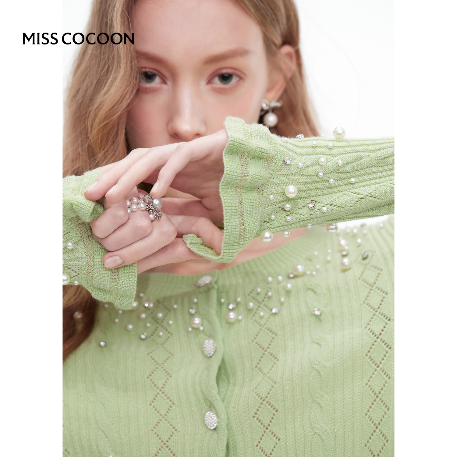 MISSCOCOON可可尼钉珠开衫上衣女2025秋季新款喇叭袖绵羊毛针织衫