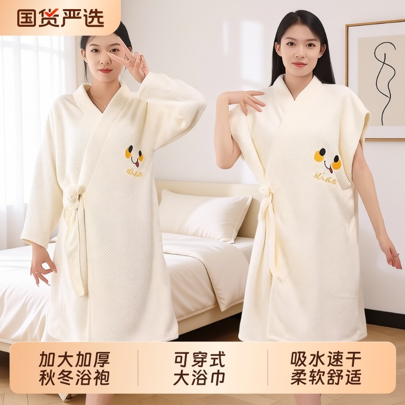新款可穿式男女浴袍睡袍吸水速干冬大浴巾不掉毛舒适成人裕裙厚款