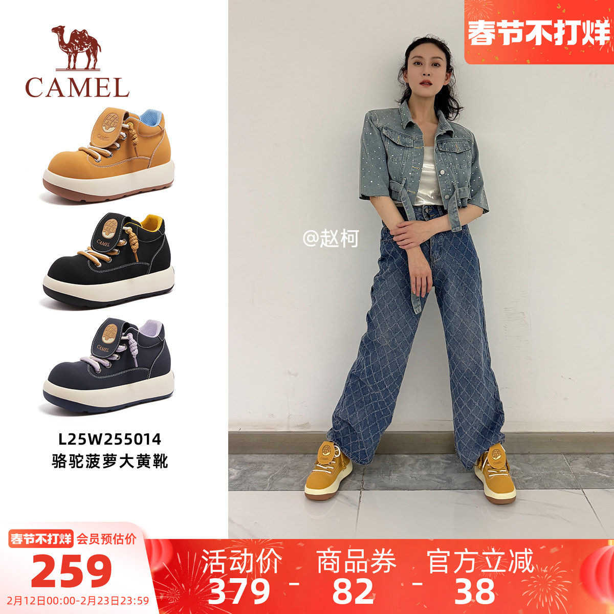 骆驼菠萝大黄靴女鞋2025秋季新款复古松糕厚底马丁靴女大头短靴子