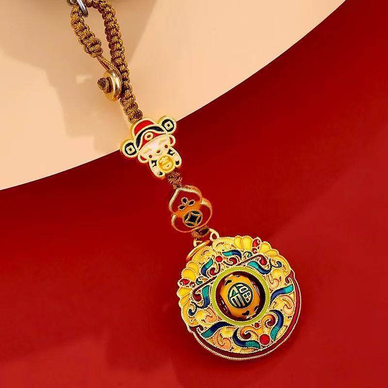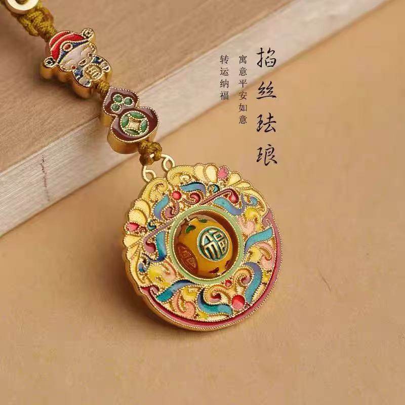 黄铜财神转运珠钥匙扣挂件钱币葫芦男女款包包挂饰景泰蓝钥匙扣
