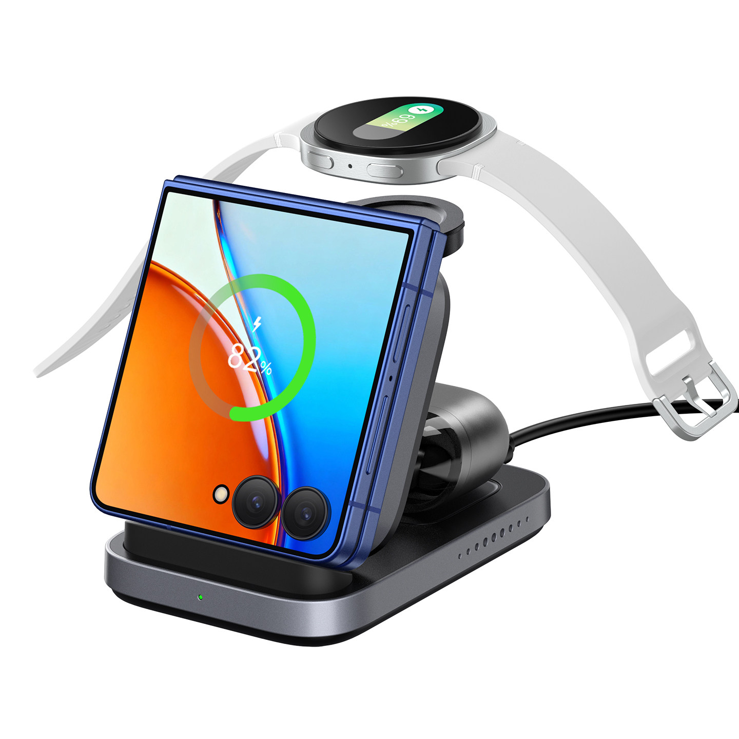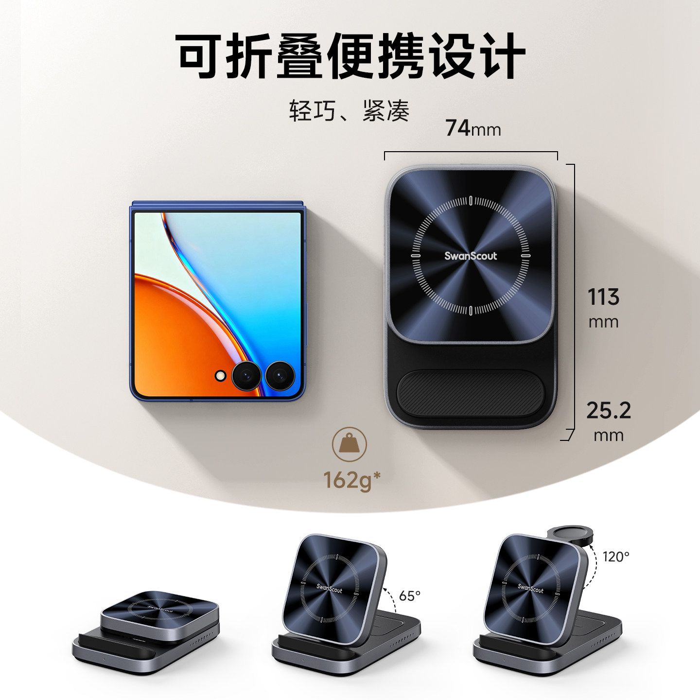 白鹄SwanScout713S/F 适用于三星GalaxyWatch8 7手表S25+Z Flip7/6/5系列手机小折叠三合一便携式无线充电器