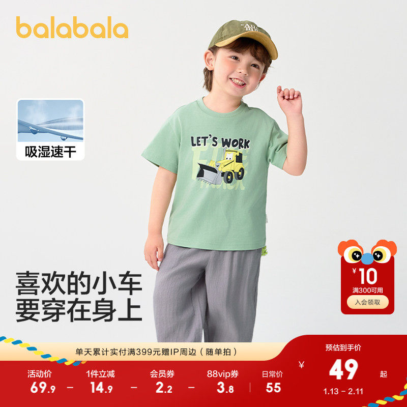 巴拉巴拉童装儿童t恤纯棉短袖上衣男童2025新款夏装吸湿速干卡通