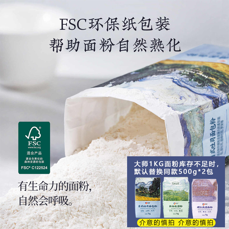新良大师日式吐司面包粉1kg高筋蛋糕软白低筋家用烘焙全麦面粉