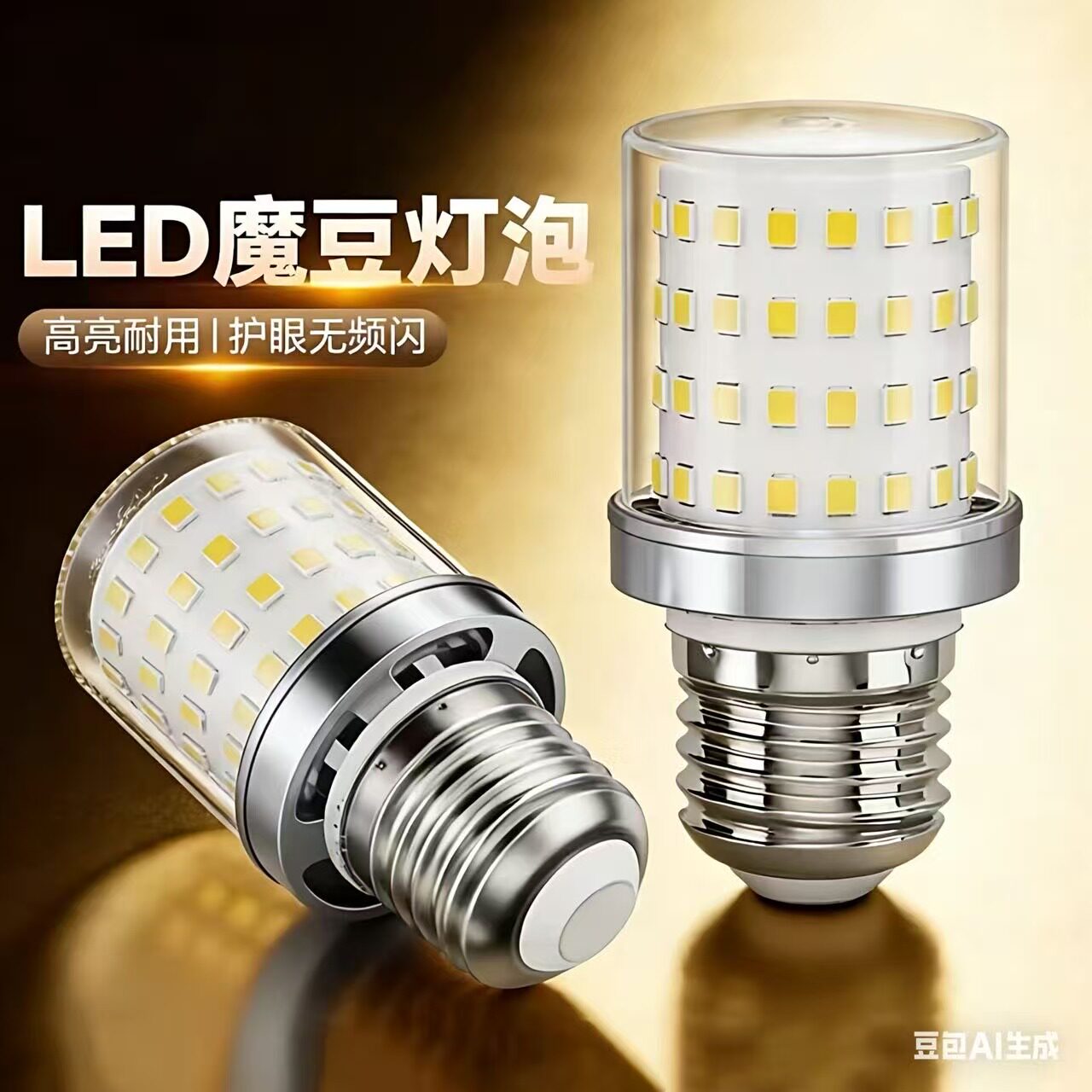 魔豆超亮led灯泡e27螺口E14玉米灯LED水晶吊灯三色变光节能台灯