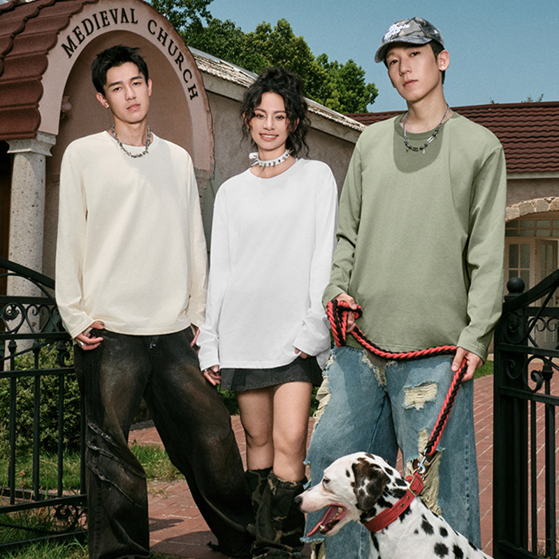 拇指白小T二代纯棉长袖t恤男女款2025秋季舒适纯色百搭打底衫