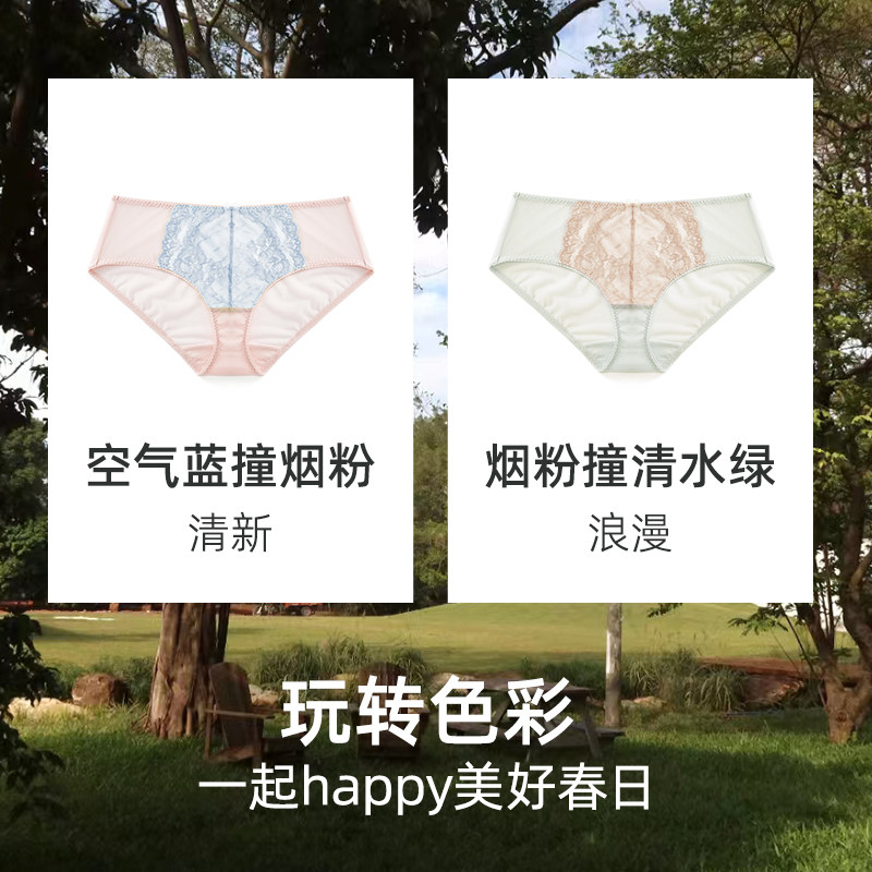 【3件包】爱慕内裤女花的藤蔓棉质底裆性感蕾丝中腰平角裤
