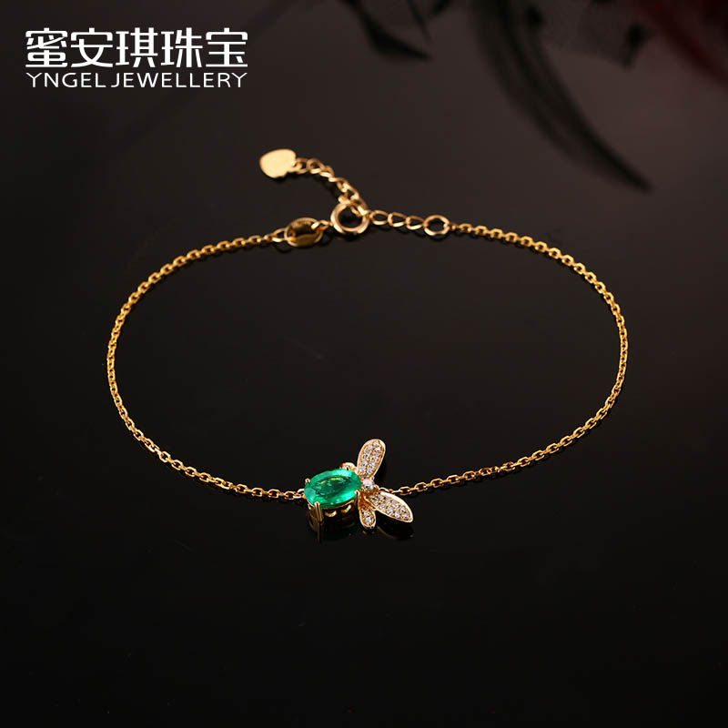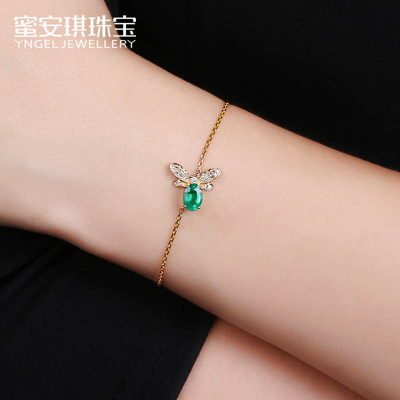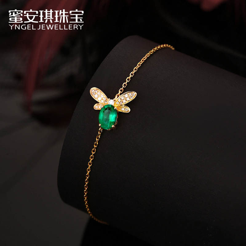 Yngel/蜜安琪0.76克拉天然祖母绿手链女18K金钻石蜜蜂手链