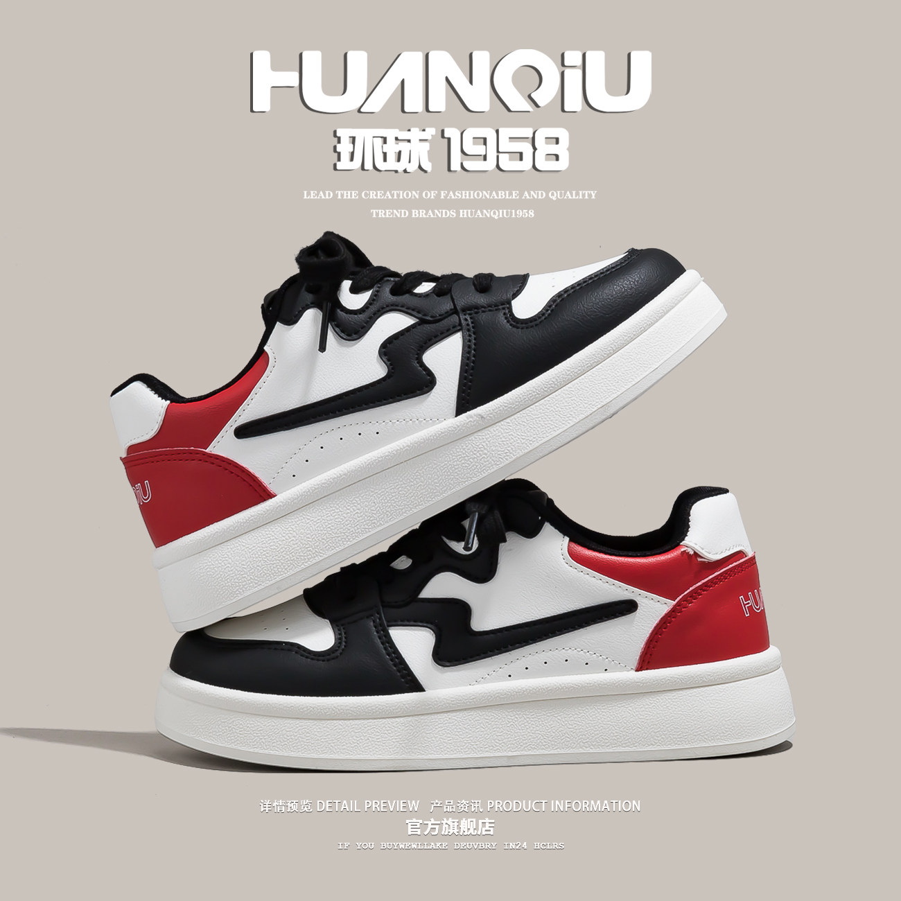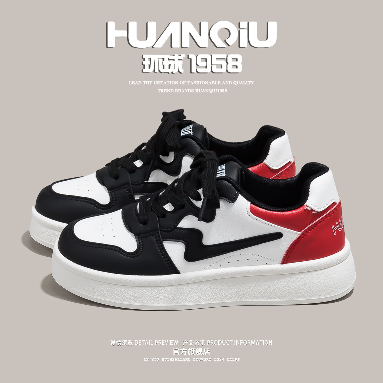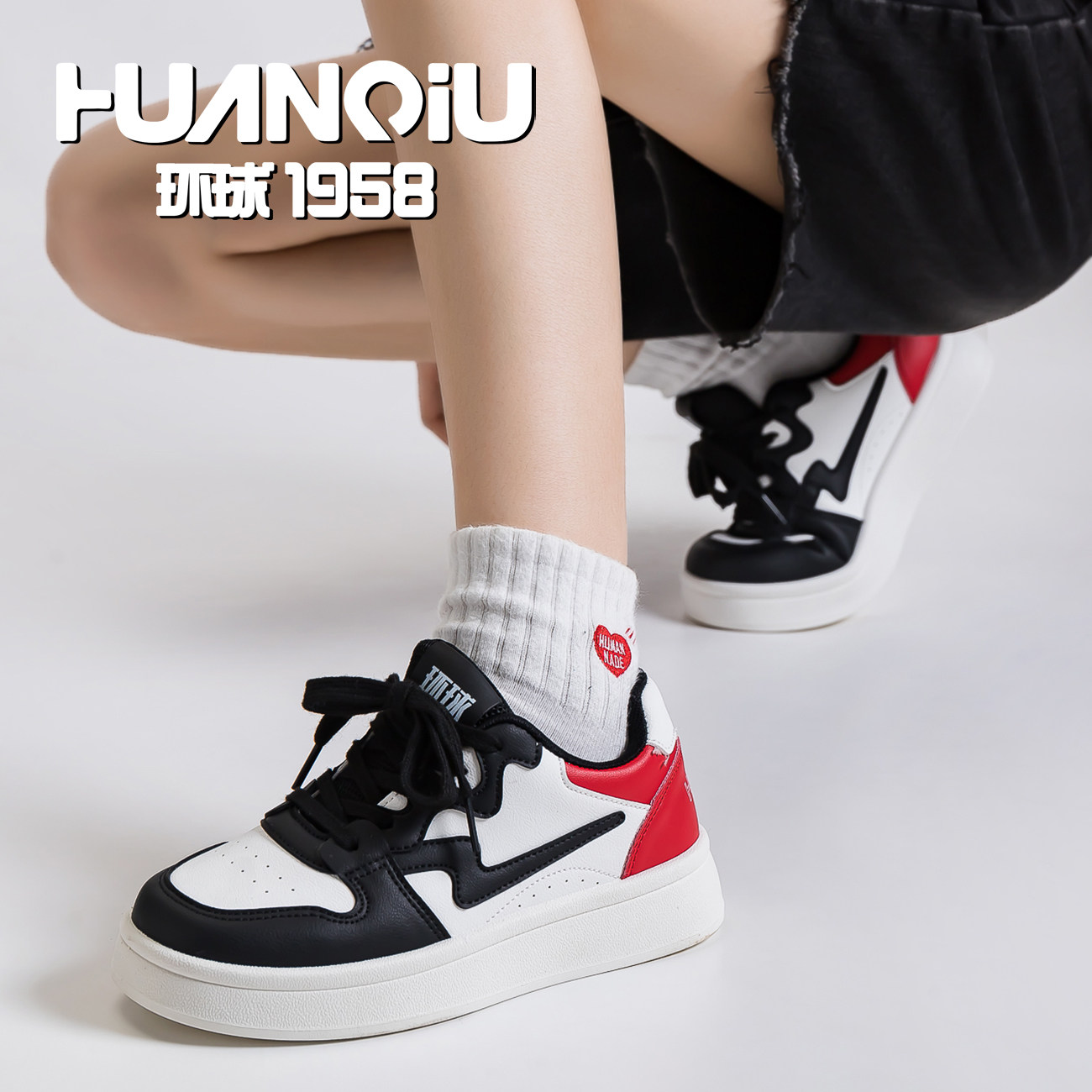 环球港风复古板鞋女2026春季新款黑白红撞色系带休闲运动百搭潮鞋