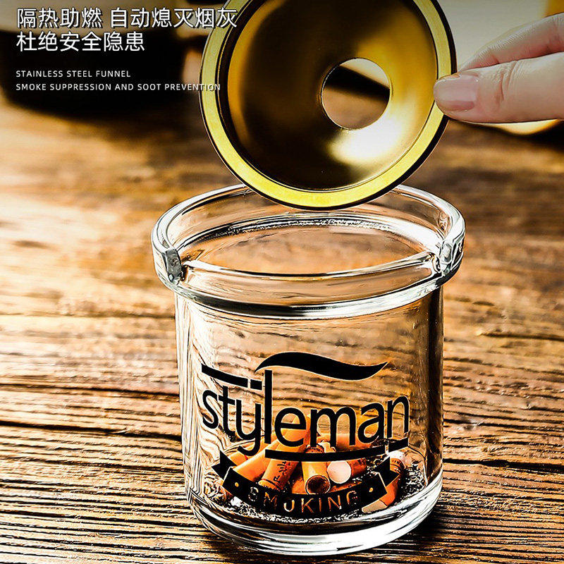 玻璃漏斗烟灰缸创意家用有简约烟缸个性办公室ins风防飞灰高级感