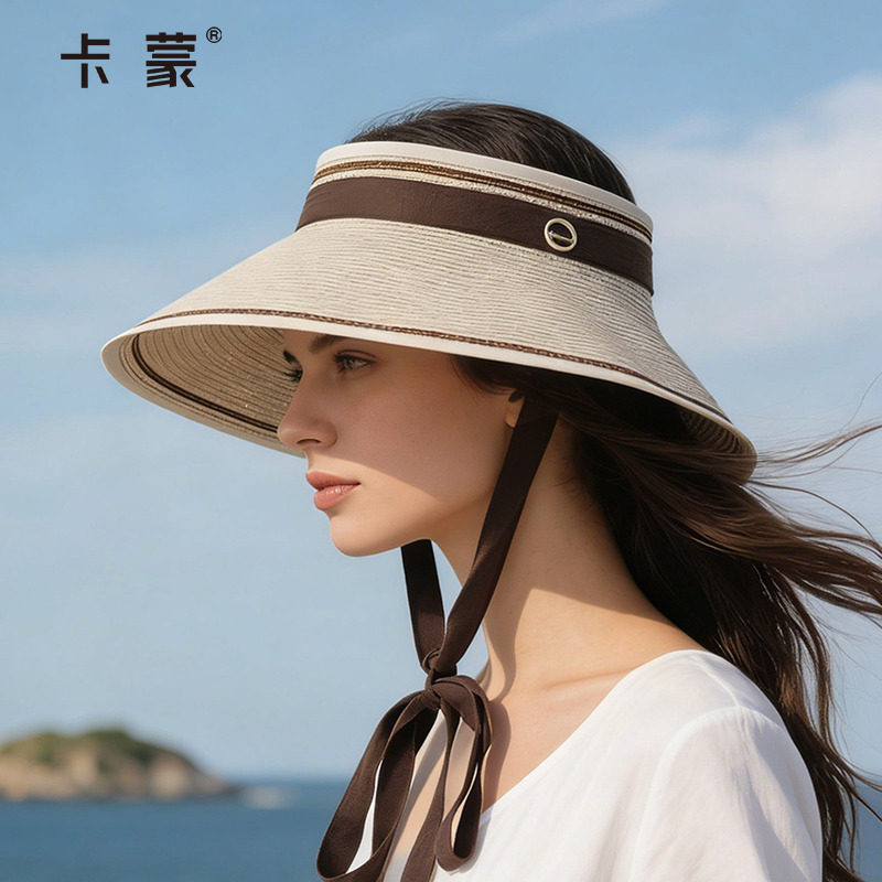 卡蒙帽子女空顶大帽檐护脸防紫外线遮阳帽渔夫帽草帽太阳帽防晒帽