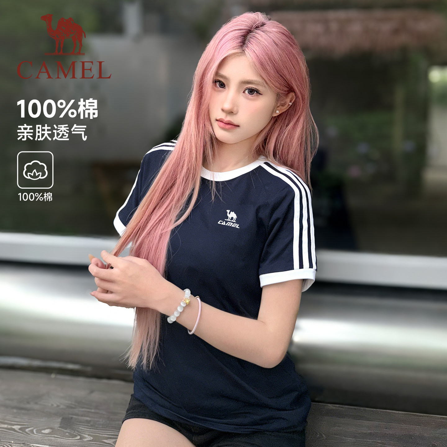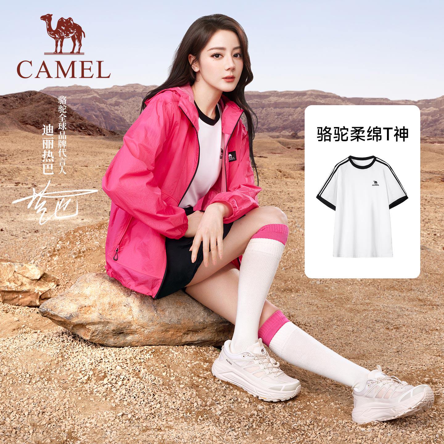 [迪丽热巴同款]骆驼柔棉T神春夏季T恤短袖女情侣宽松休闲上衣男