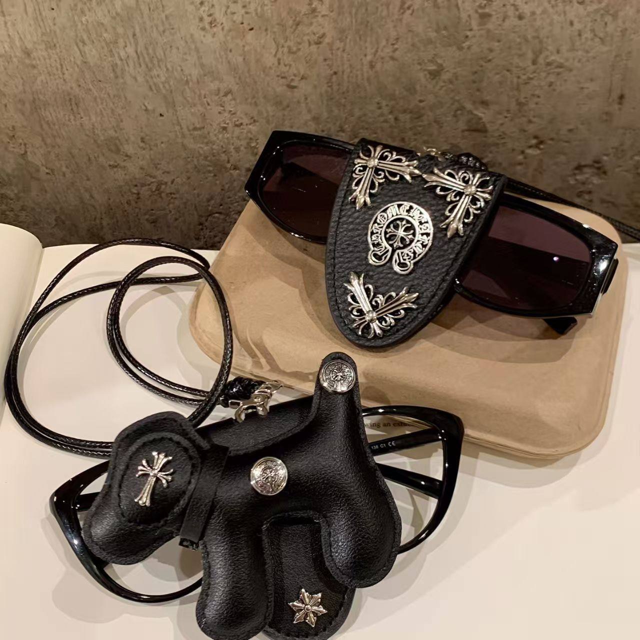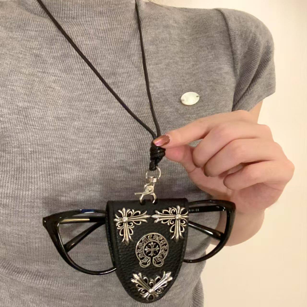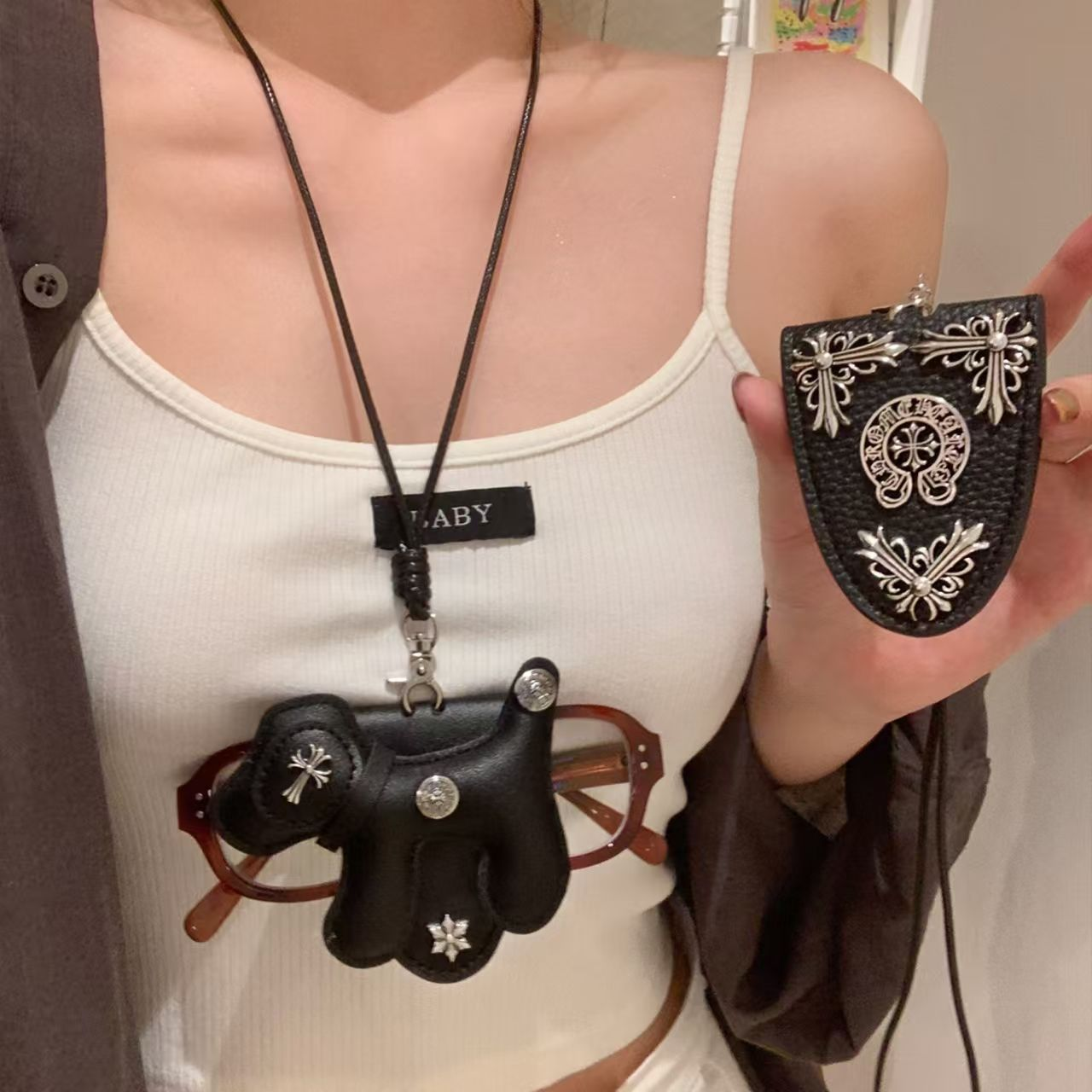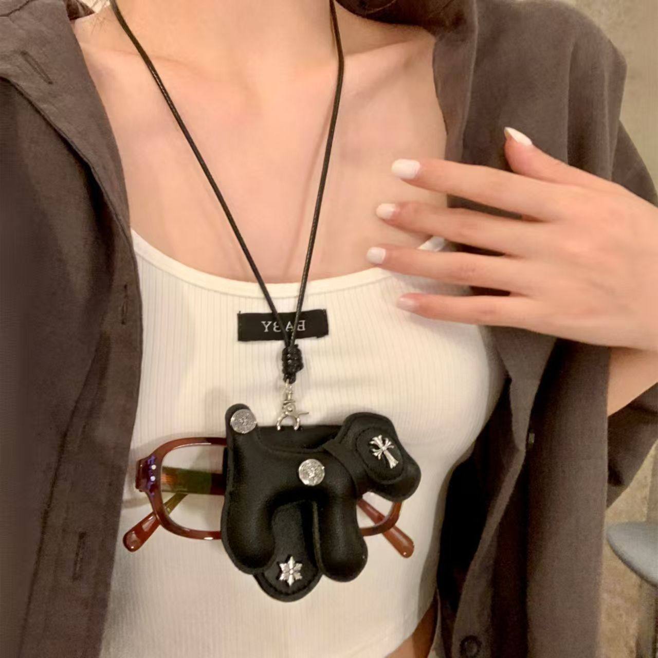 甜黑色小狗十字架磁吸眼镜夹项链女长款挂脖墨镜夹颈链配饰毛衣