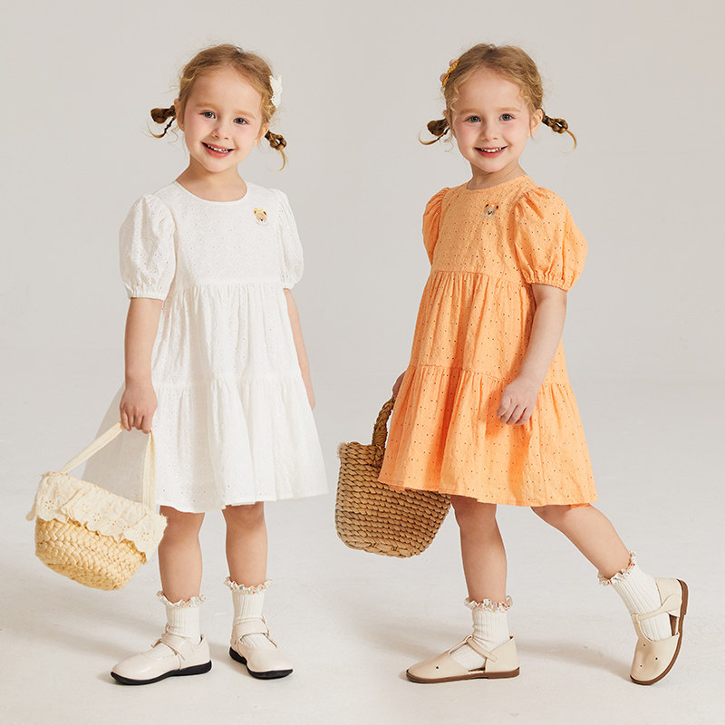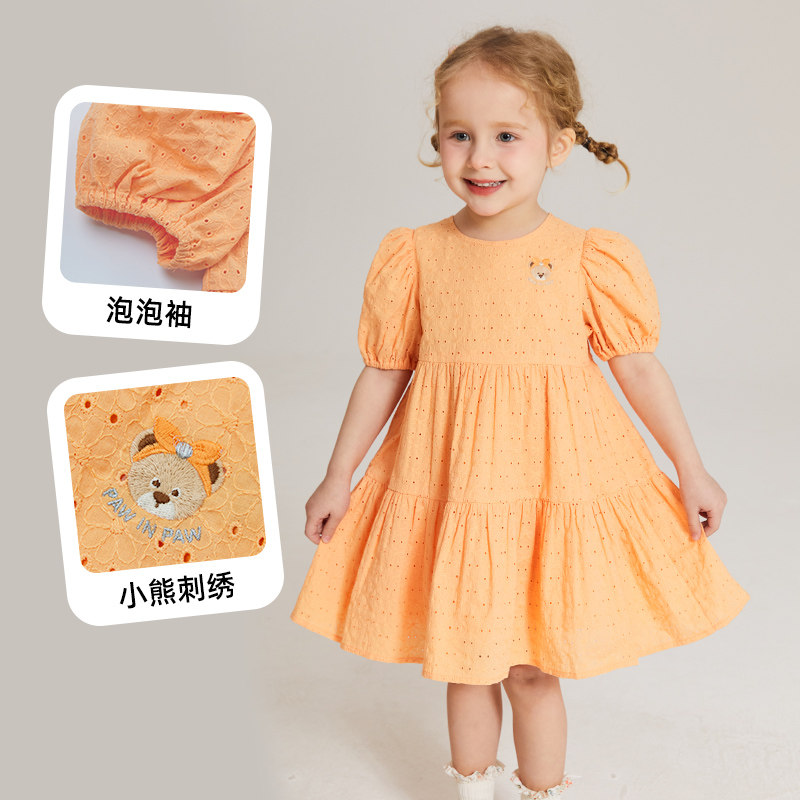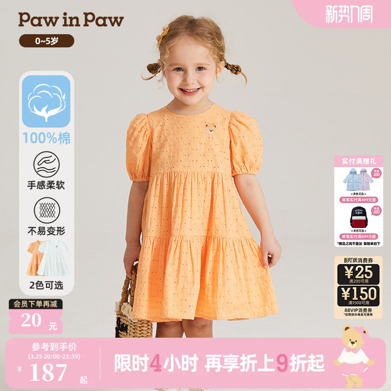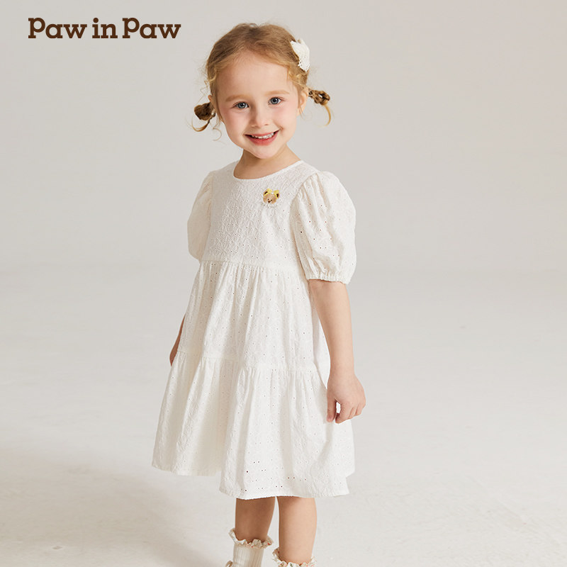 PawinPaw卡通小熊童装夏季女宝宝绣花舒适洋气公主风连衣裙