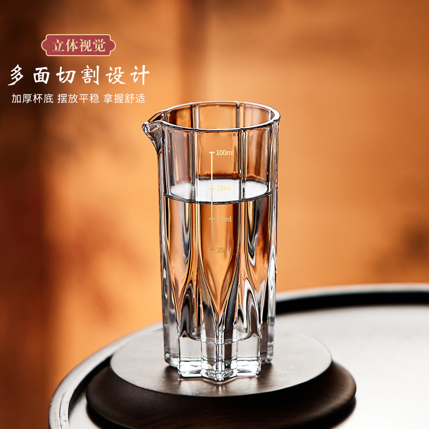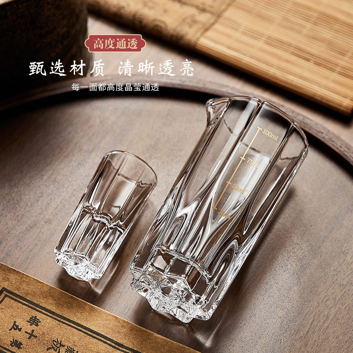 中式家用玻璃白酒杯礼盒套装一口杯烈酒杯分酒器分酒壶小号高脚杯