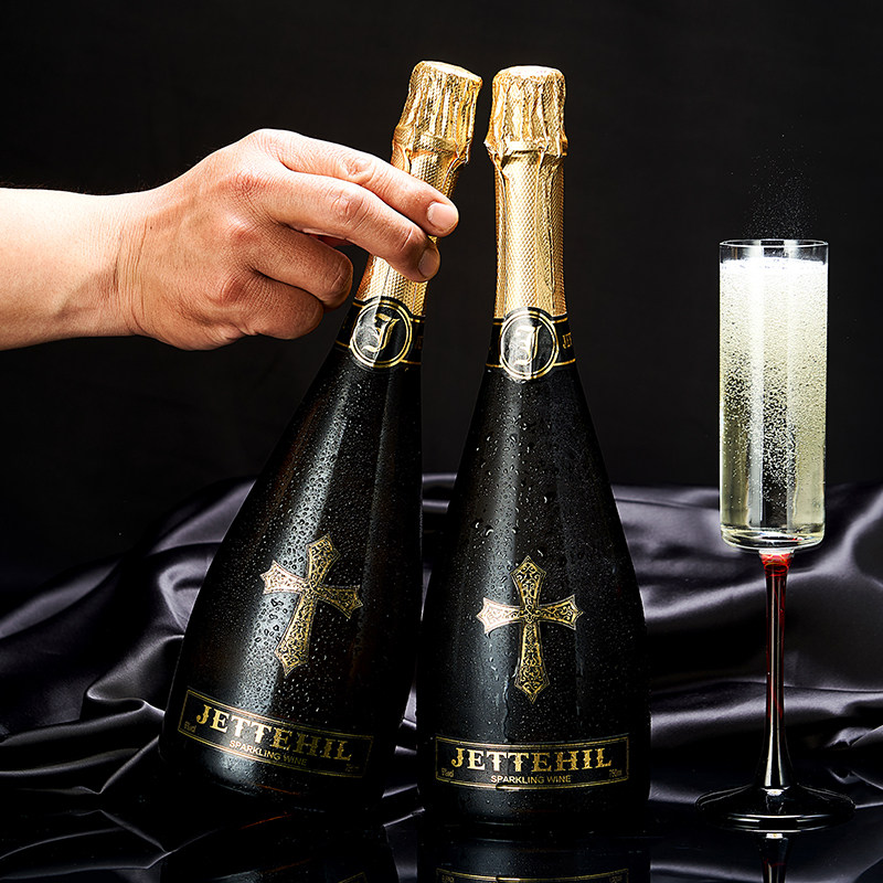 JETTEHIL气泡酒2支起泡酒果酒红酒葡萄酒750ml*2清甜苹果味荔枝味