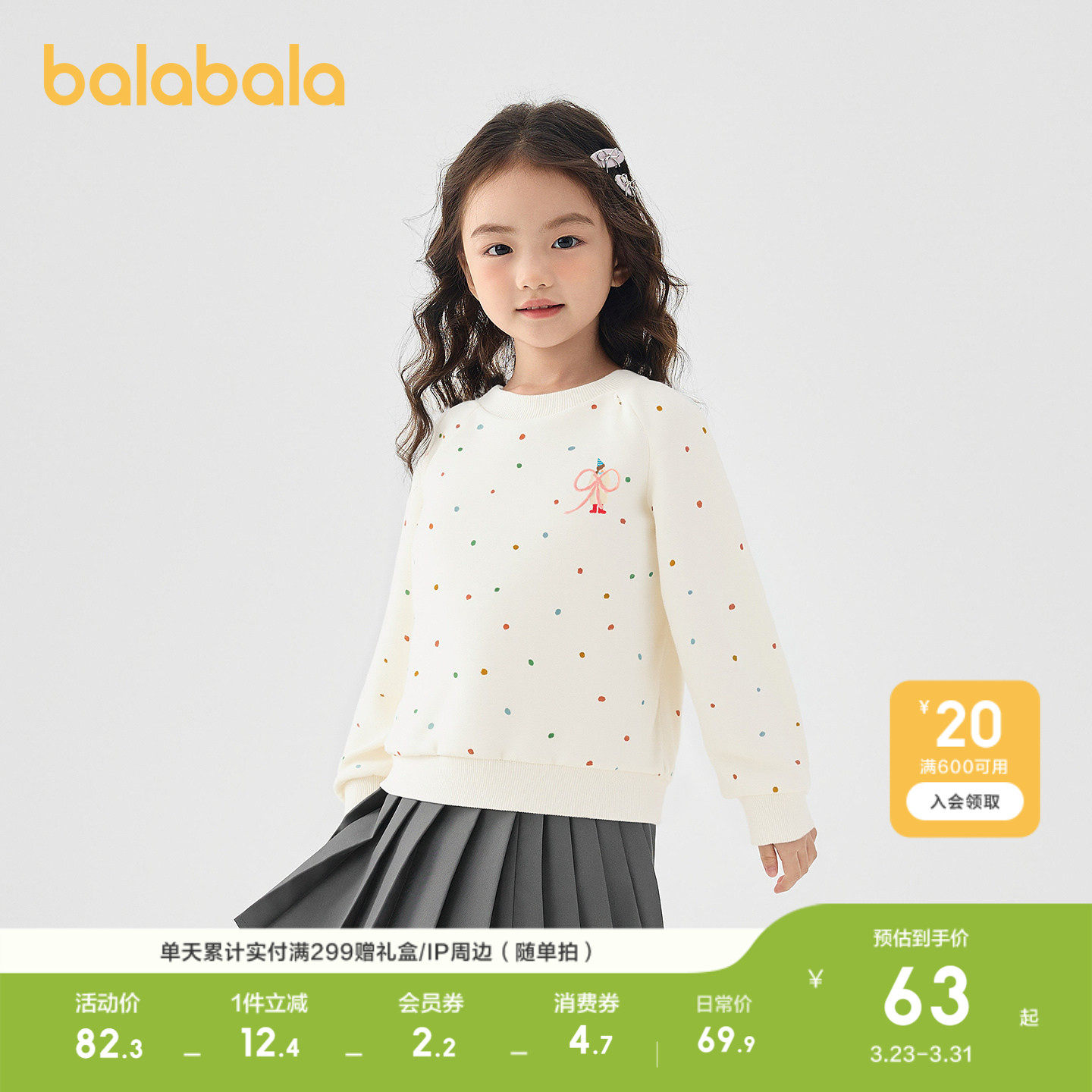 巴拉巴拉童装儿童卫衣女童秋冬装拼色假两件上衣加绒内搭甜美潮流