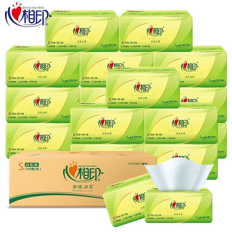心相印抽纸茶语卫生纸餐巾纸家用实惠箱装纸巾120抽20包面巾纸巾