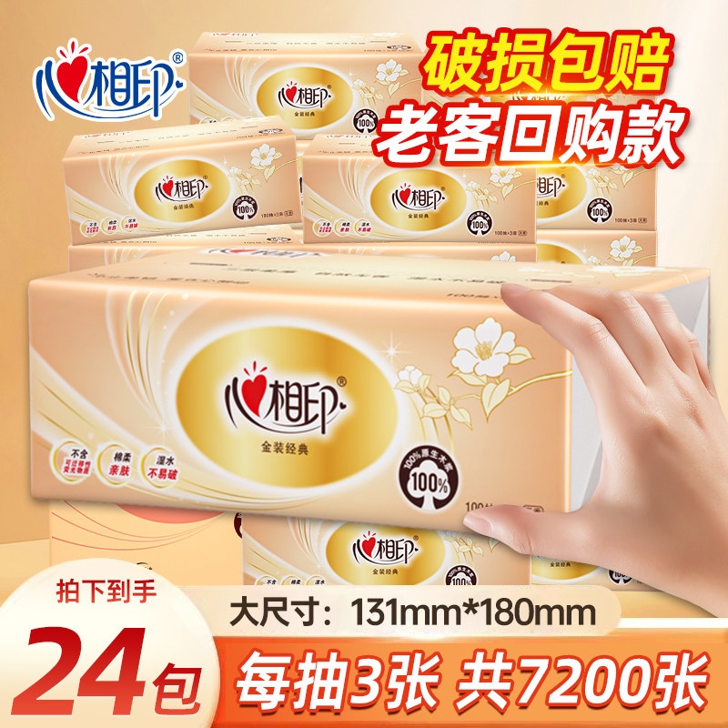 心相印抽纸茶语餐巾纸面巾纸整箱批发卫生纸大包加厚实惠经典原生