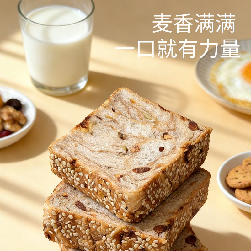 全麦坚果厚切小吐司手撕面包整箱学生早餐代餐30天短保懒人速食