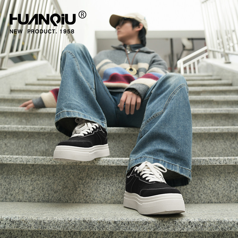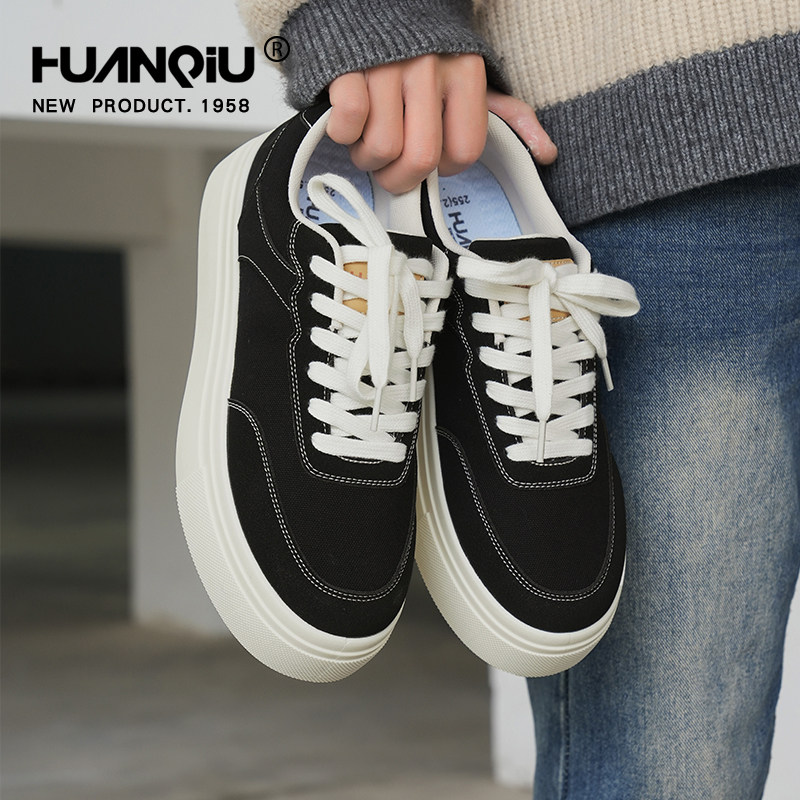 环球厚底帆布鞋男款2025新款秋冬透气轻便增高板鞋休闲运动鞋子男