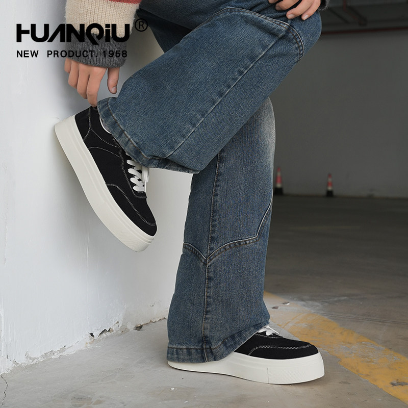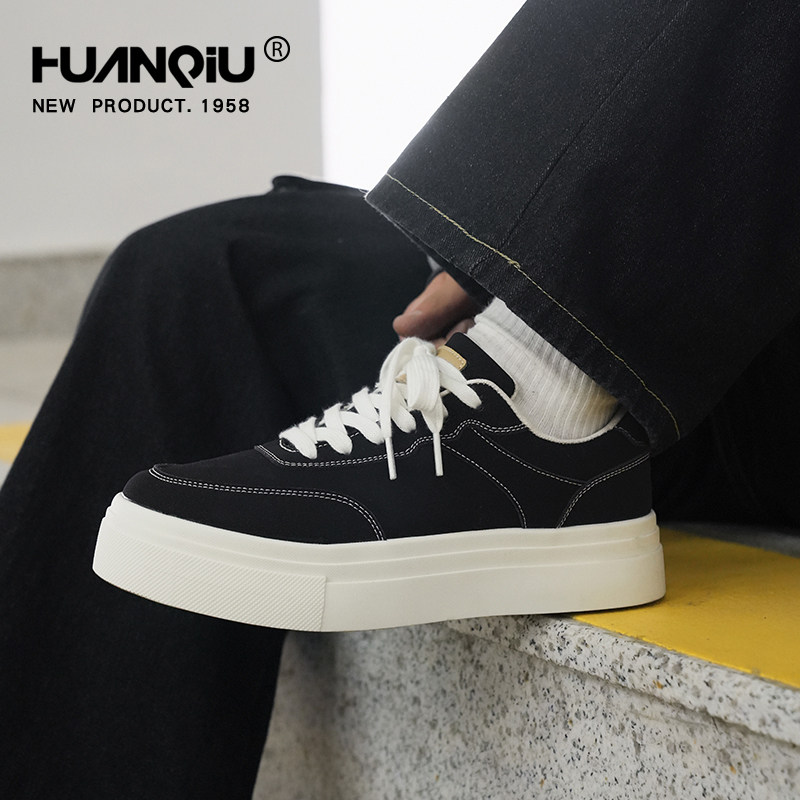 环球厚底黑色帆布鞋男2026春季新款休闲运动鞋子男鞋潮流时尚板鞋
