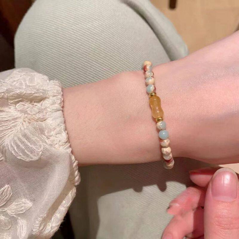 粉色碧玺水晶串珠手链小众设计新款新中式手串高级感国风闺蜜手饰