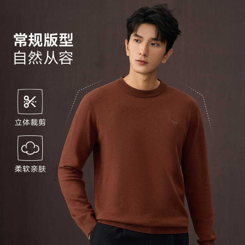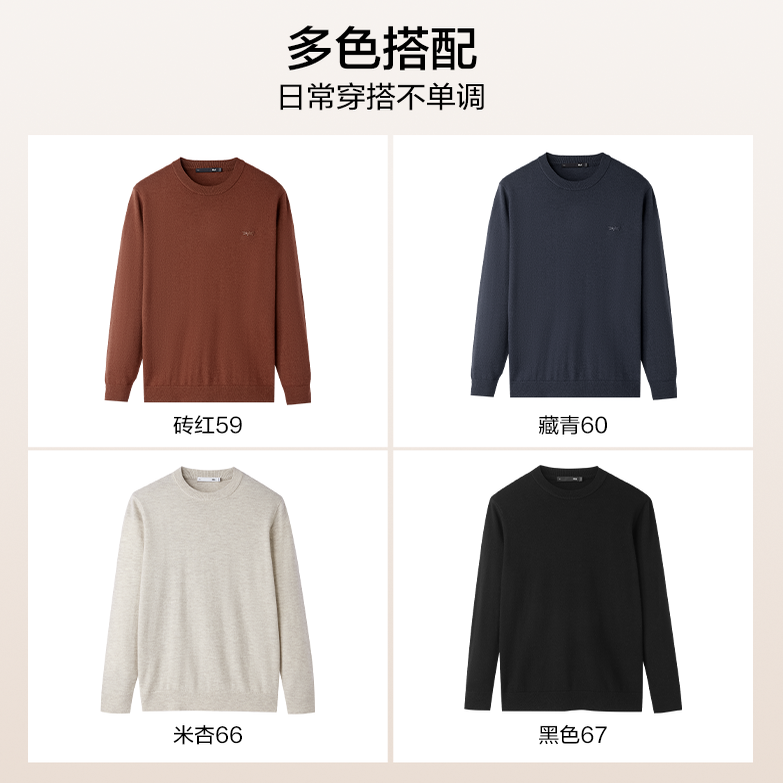 森马毛衫男冬季含羊绒红色针织衫发热抑菌新款基础圆领黑色打底衫