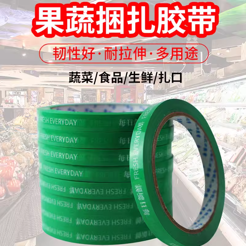 每日新鲜胶带蔬菜果蔬捆扎胶带活动促销专用捆菜胶带黄绿红蓝彩色生鲜果蔬扎口捆绑胶带超市绑菜胶条批发包邮