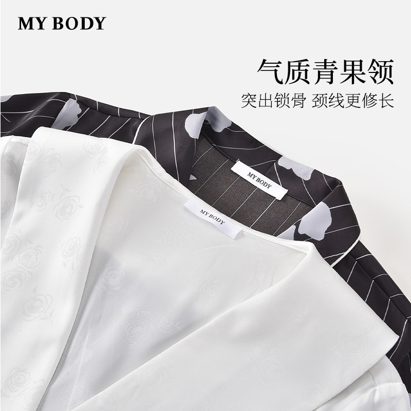 商场同款MYBODY26春季新款睡衣时尚青果领印花三件套可外穿家居服