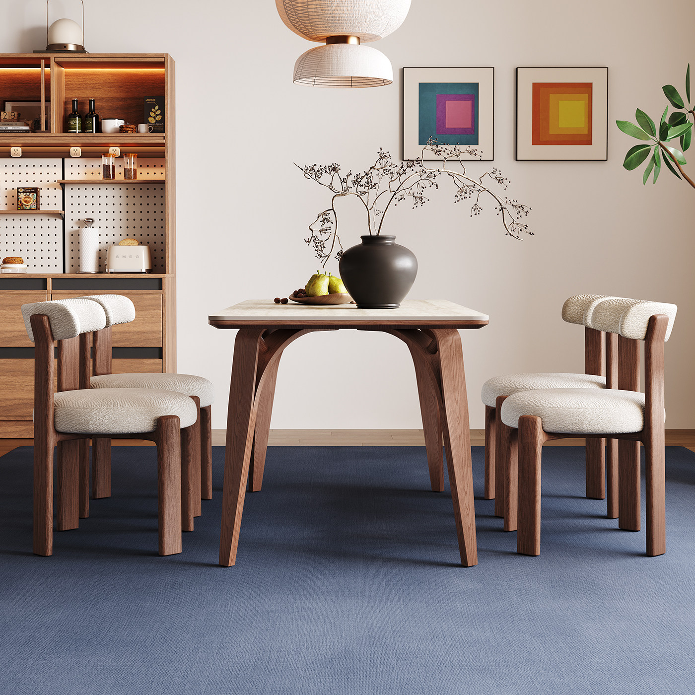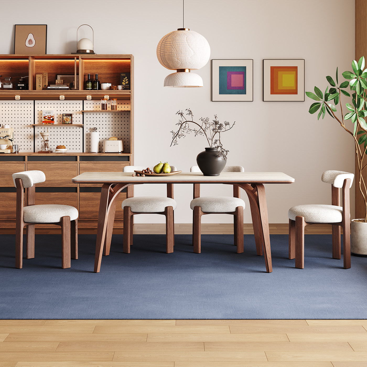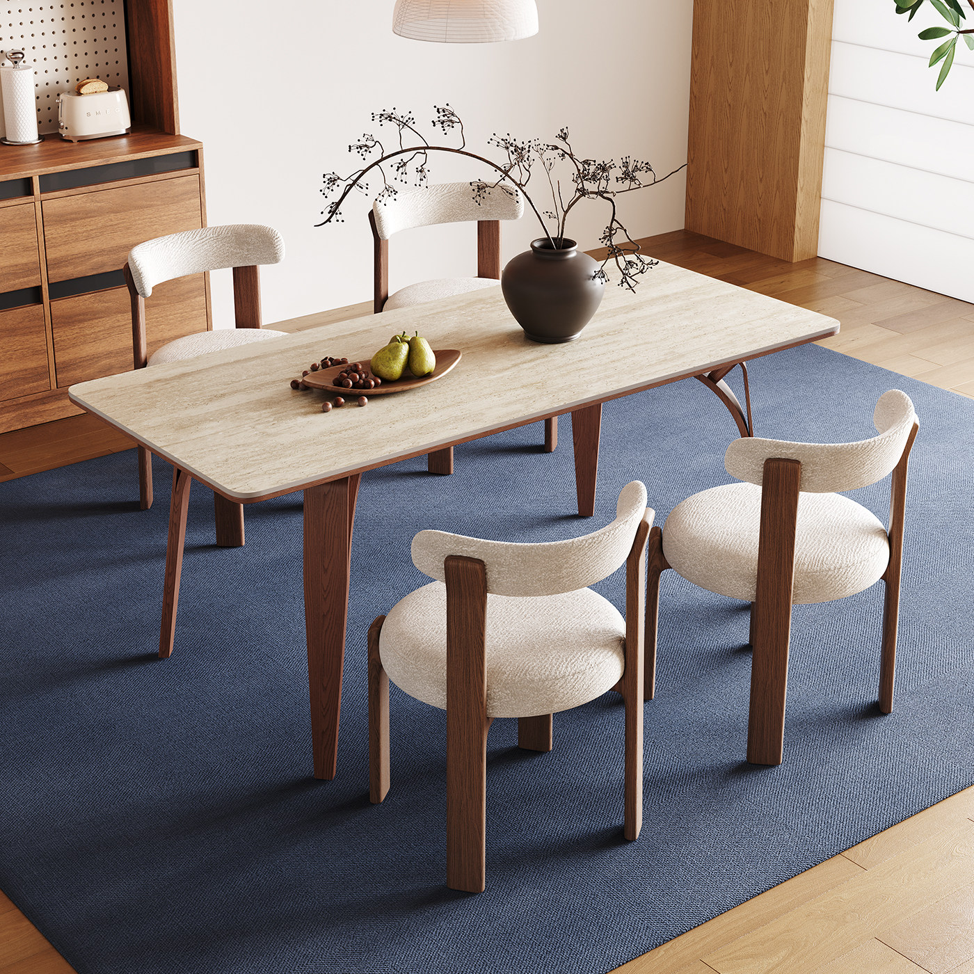 奥古斯特中古风餐桌长方形2026新款川野复古高端洞石岩板实木餐桌