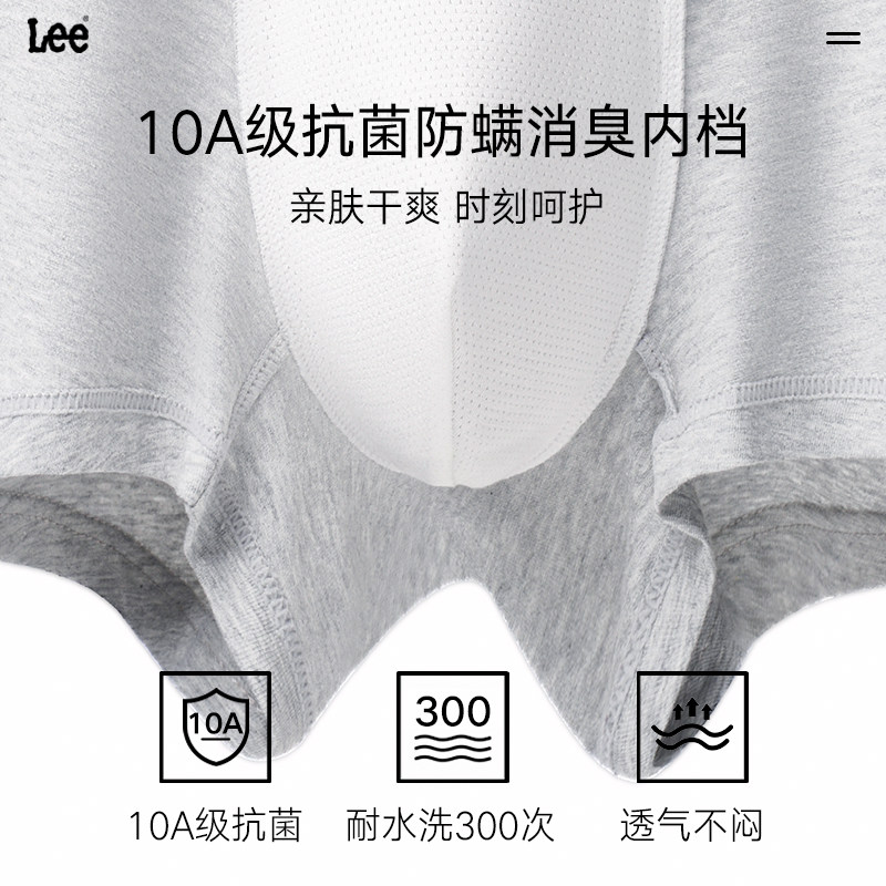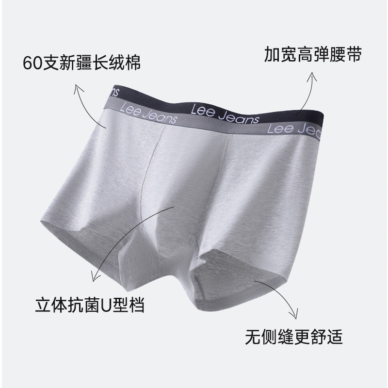 美国Lee李牌80支云感纯棉无痕内裤男士10A级抗菌透气平角裤四角裤