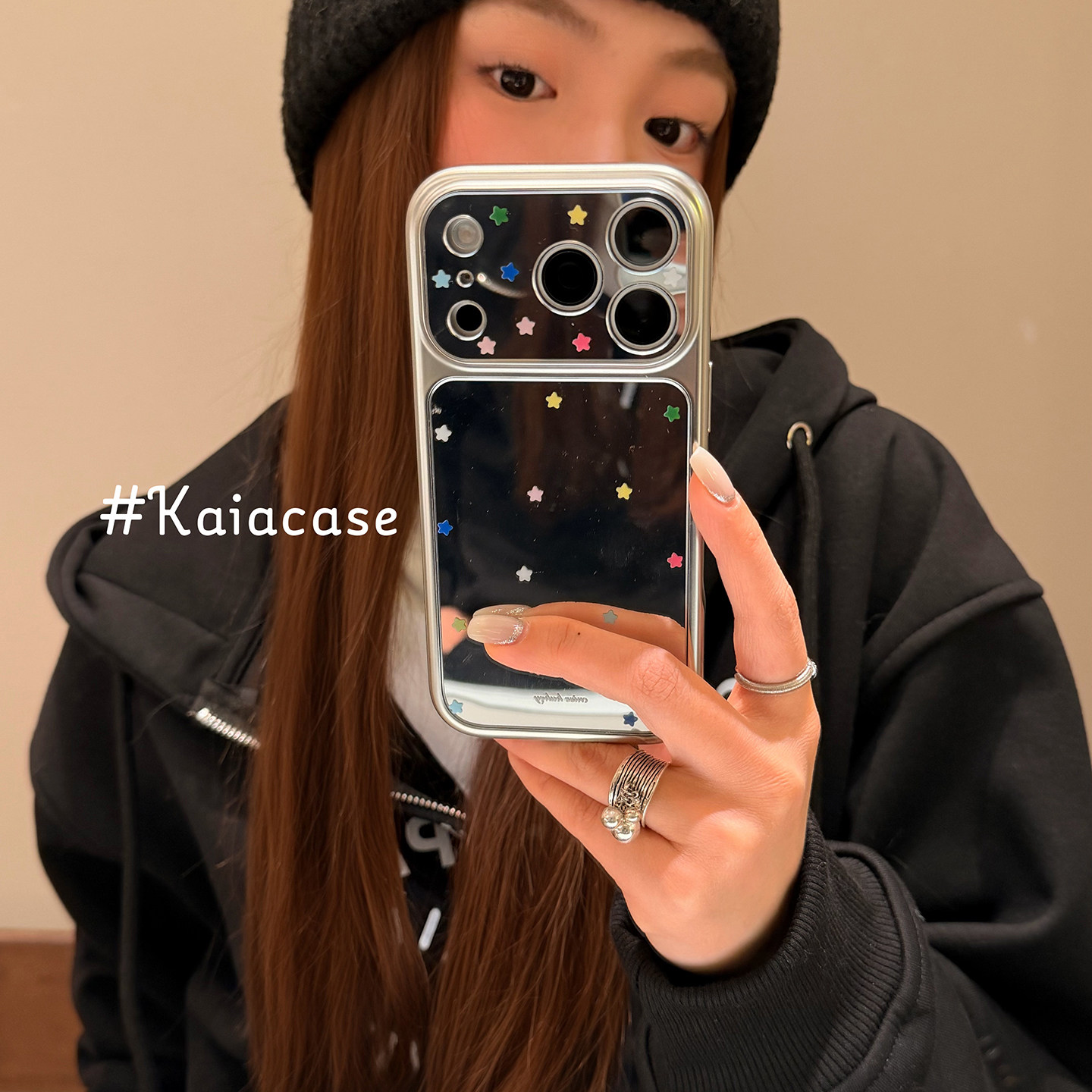 kaia 日韩ins简约彩色小星星镜面适用苹果17promax手机壳iphone16pro新款17女14pro创意15pro全包防摔手机套