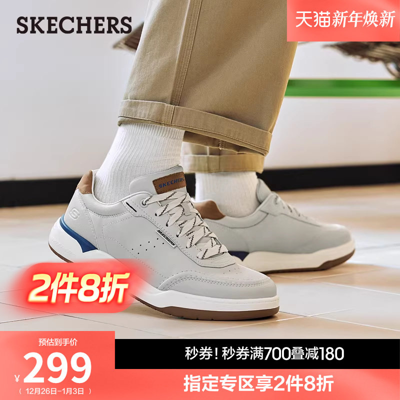 斯凯奇秋冬季男鞋脚宽脚胖2025新款时尚皮面板鞋厚底休闲运动鞋