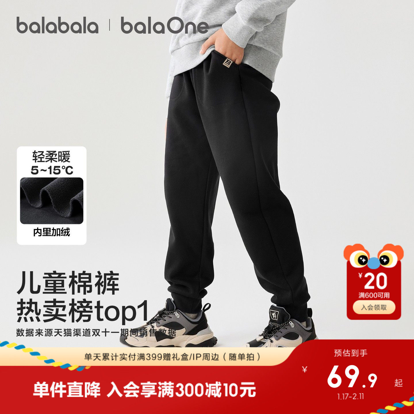 巴拉巴拉童装男童加绒长裤儿童裤子2025秋冬装女童运动休闲裤百搭