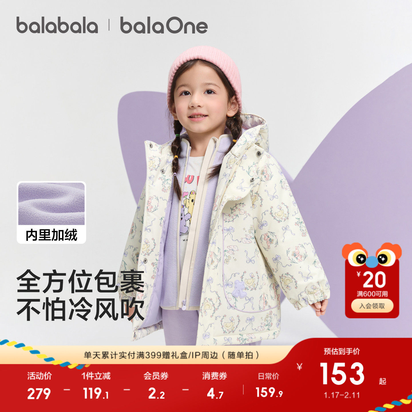 巴拉巴拉童装儿童上衣男童外套女童两件套春秋2026三防红色拜年服