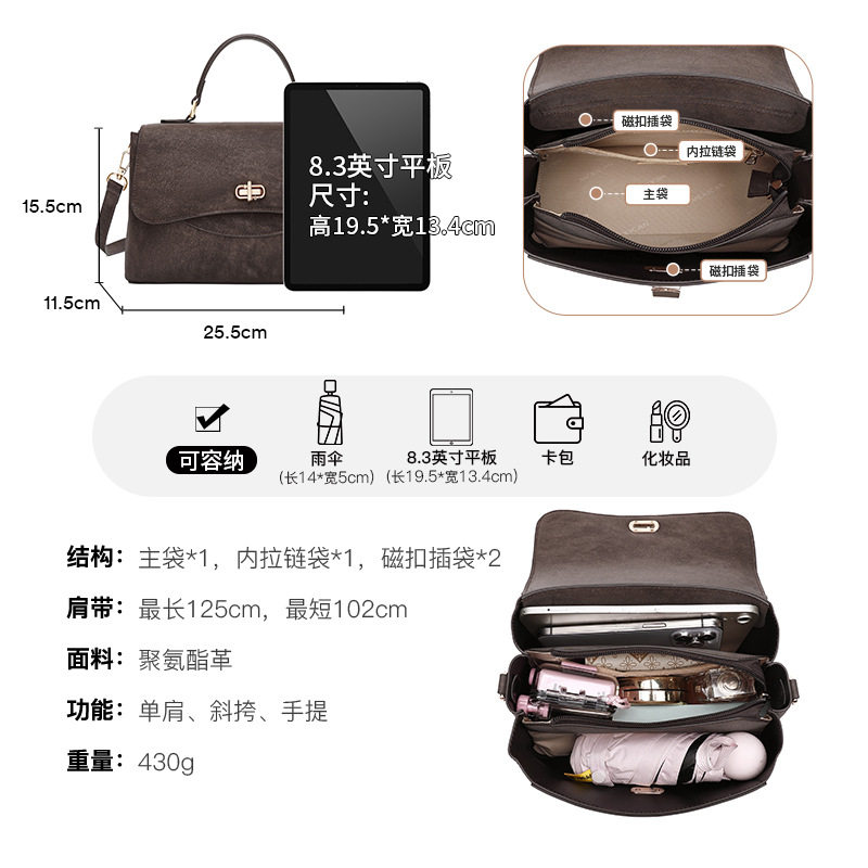 稻草人包包女2026新款时尚百搭单肩斜挎包高级感手提包立体小方包