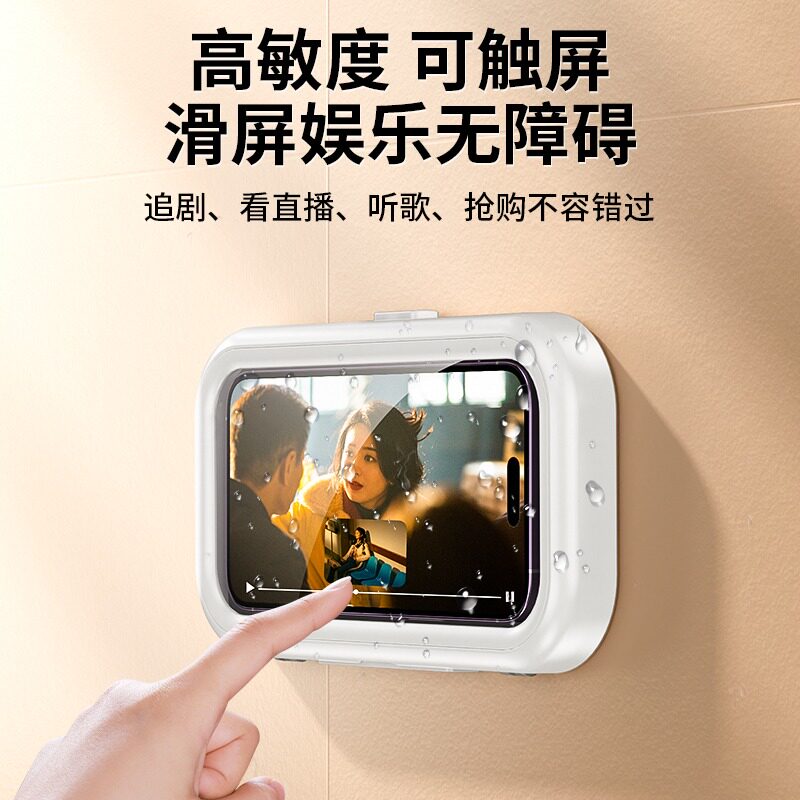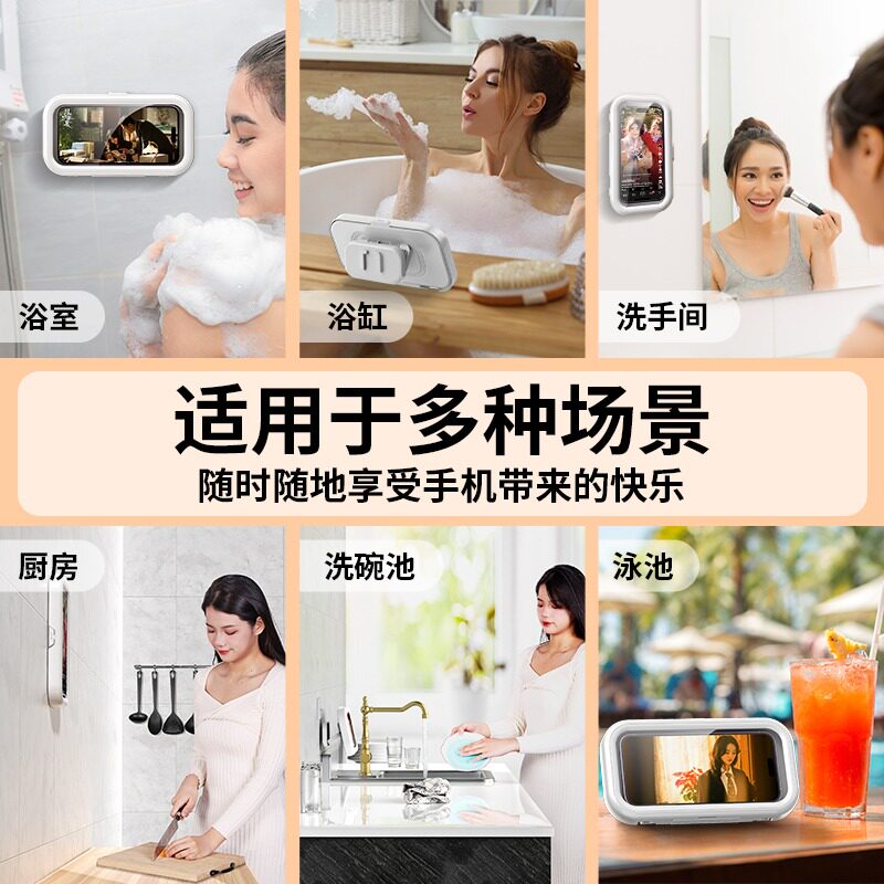 浴室手机支架防水手机盒支架洗澡看电视支架厕所追剧放卫生间防水可伸缩免打孔手机盒可旋转洗手间懒人神器
