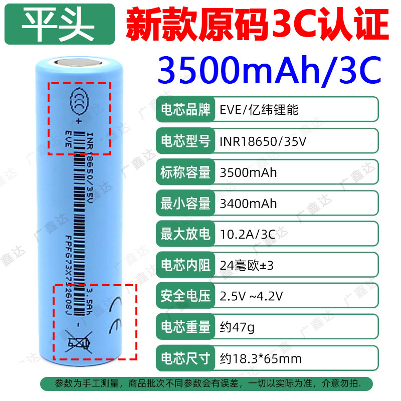正品亿纬18650锂电池3500mAh大容量30A大功率电动工具动力芯3.7V