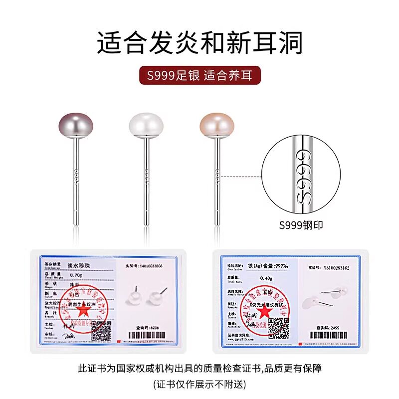 S999纯银天然淡水珍珠小耳钉女2026新款爆款养耳洞耳环高级感耳饰