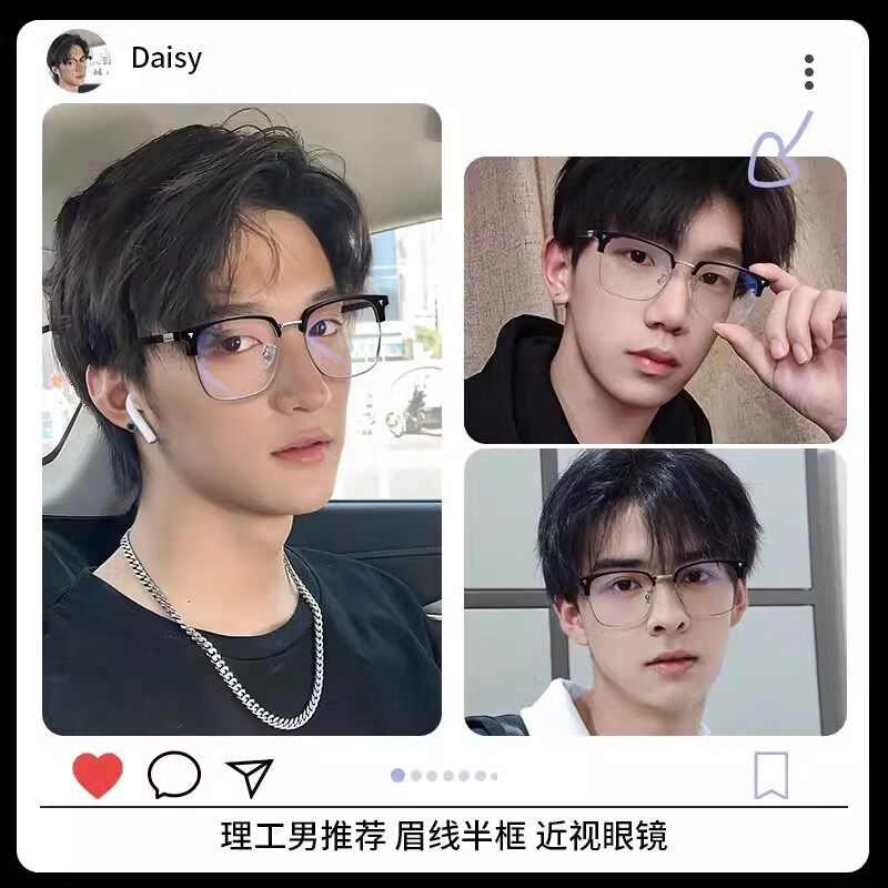 超轻半框眼镜男款近视可配度数防蓝平光镜光斯文眼睛架理工男眼睛