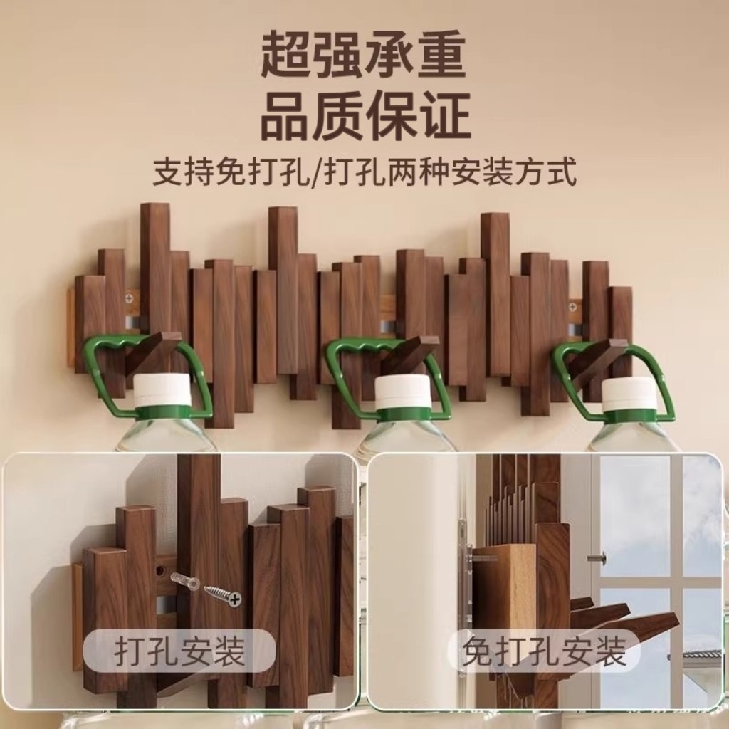 钢琴键挂衣架免打孔实木墙上壁挂钩卧室玄关入户进门后置物衣帽架