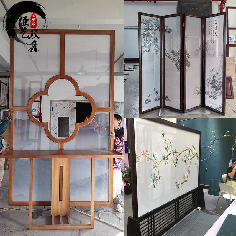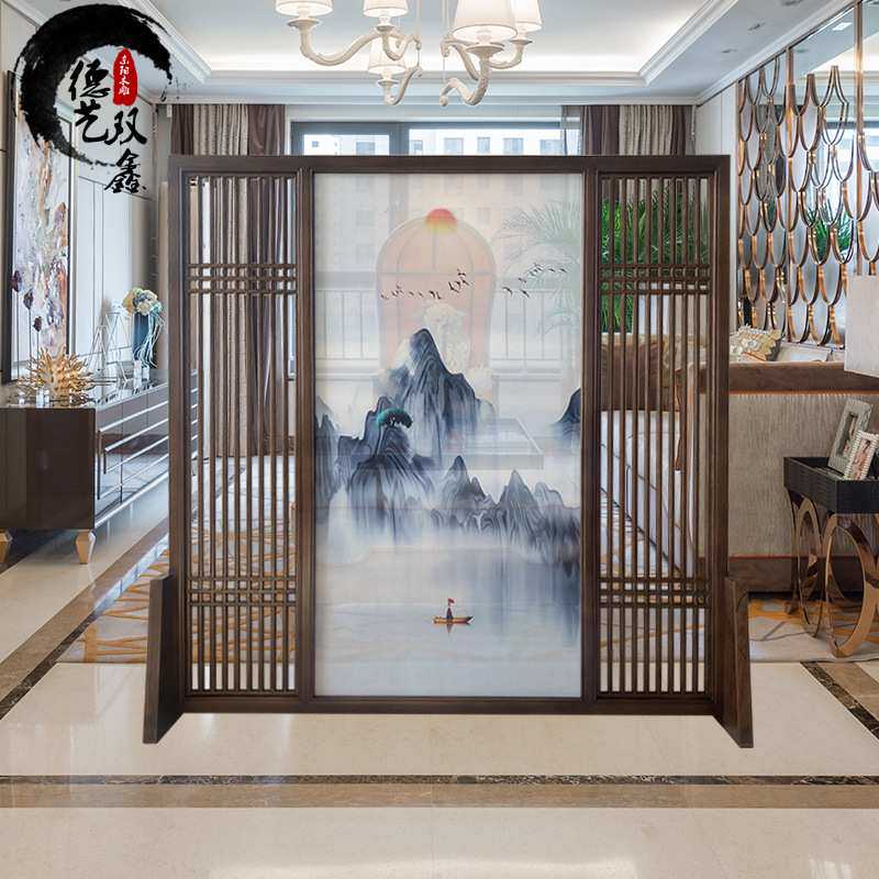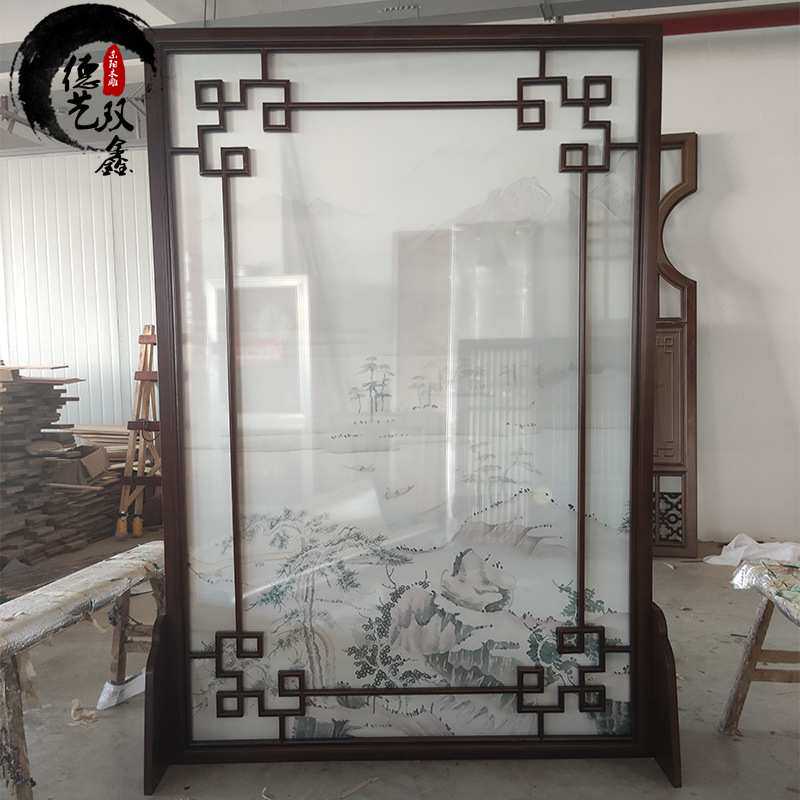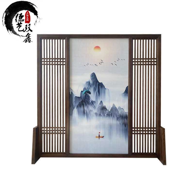东阳木雕新中式实木玄关隔断 仿古木质花格格栅 客厅落地屏风座屏