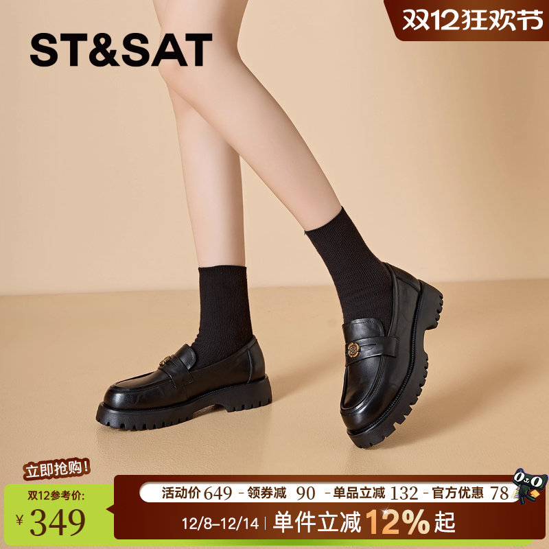 星期六真皮春上新自由通勤风减龄乐福鞋厚底