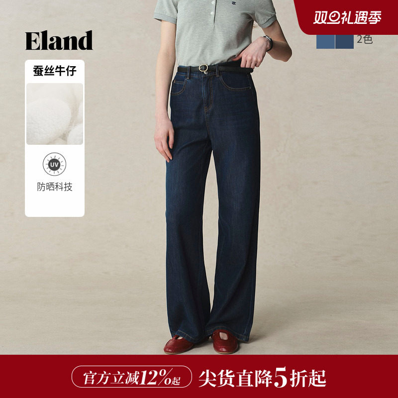 【蚕丝丹宁】Eland衣恋牛仔裤女复古风小高腰阔腿裤2025夏季新款