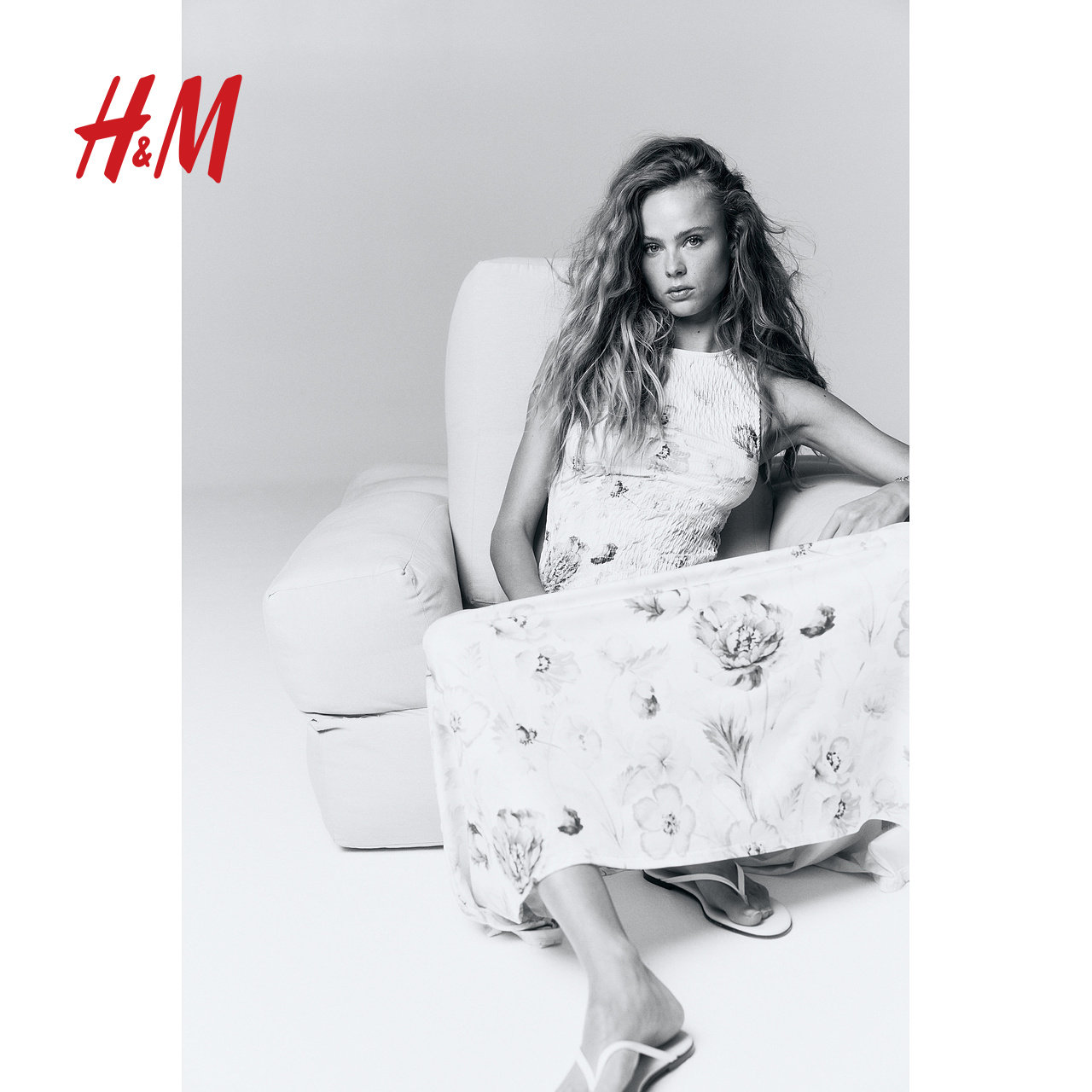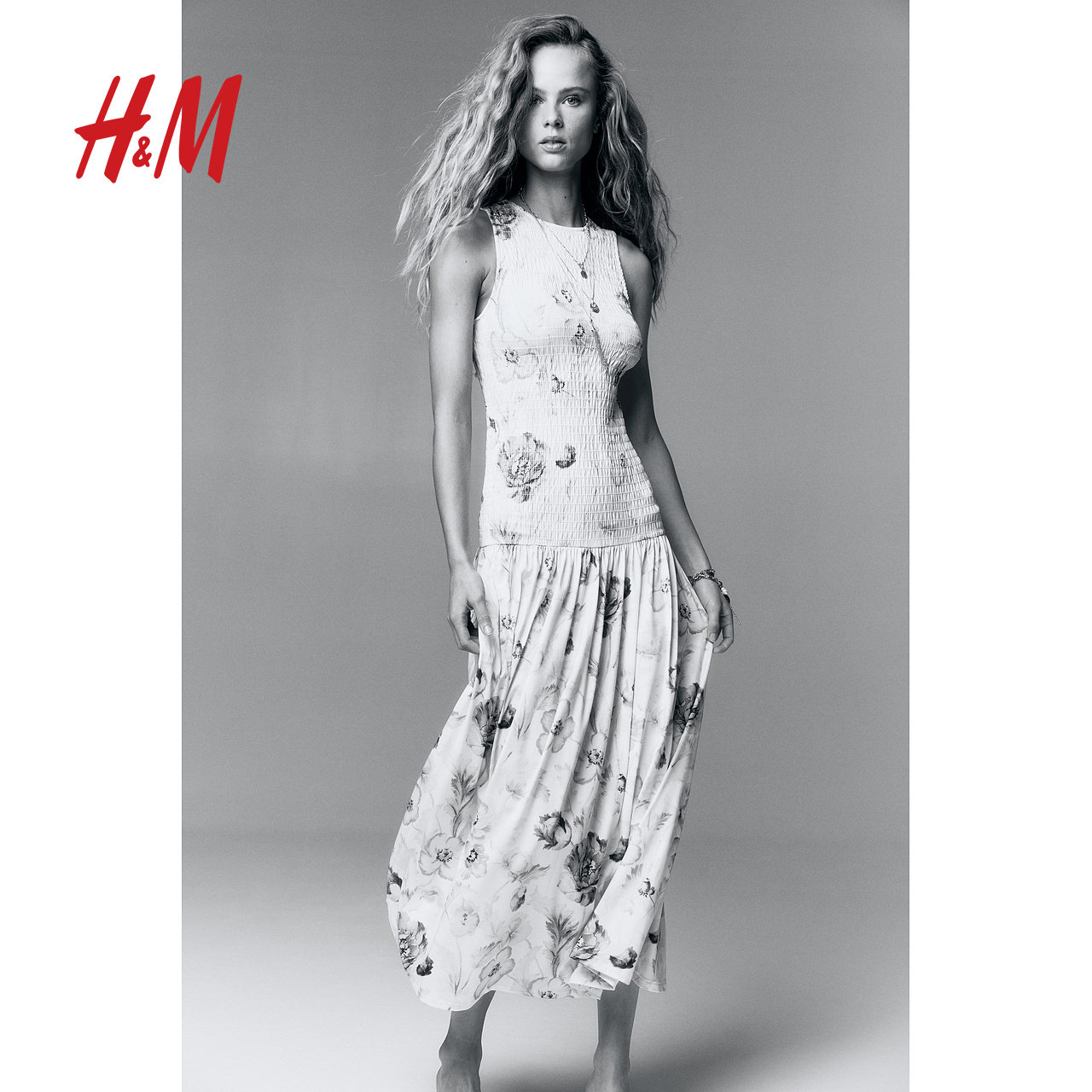 HMS/S2025女装连衣裙春季吊带波嬉风微喇植物印花长裙1275801
