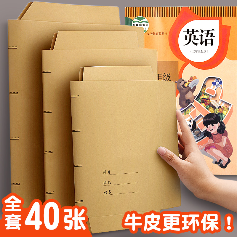 牛皮纸书皮套包书纸纸质书皮纸白色书套加厚复古中国风16k 32k A4一/二/三/四/五 年级初中小学生全套作业本